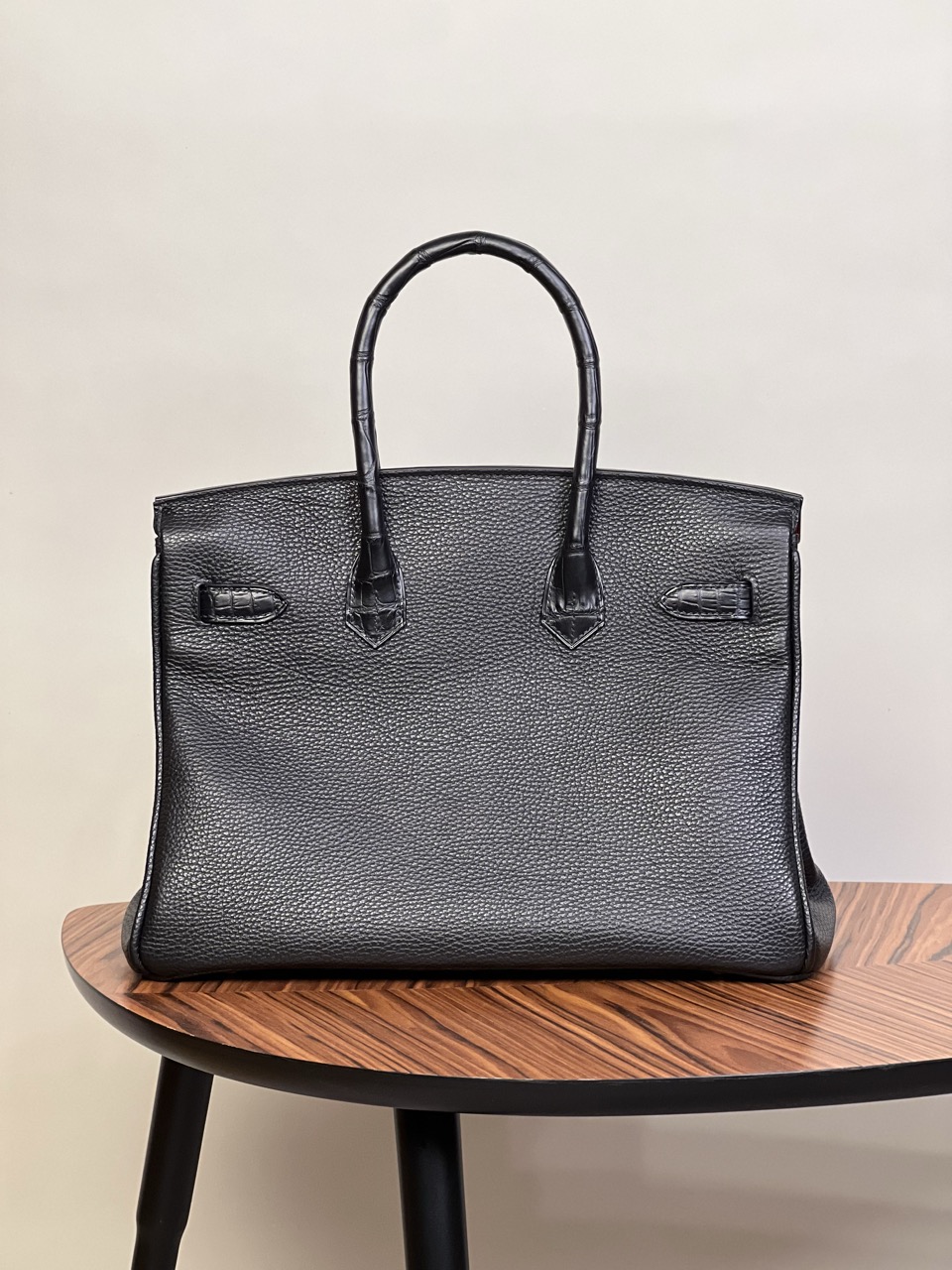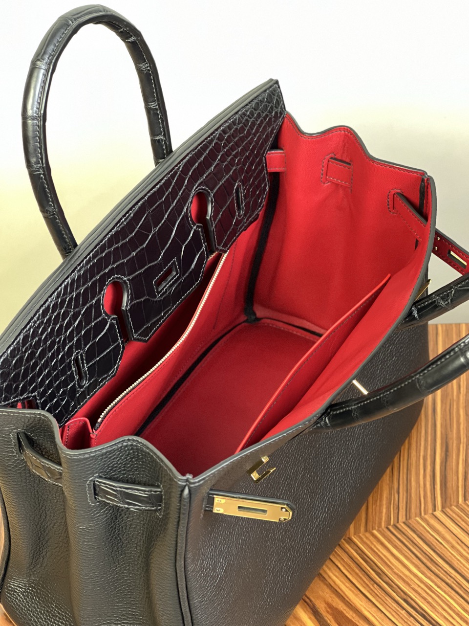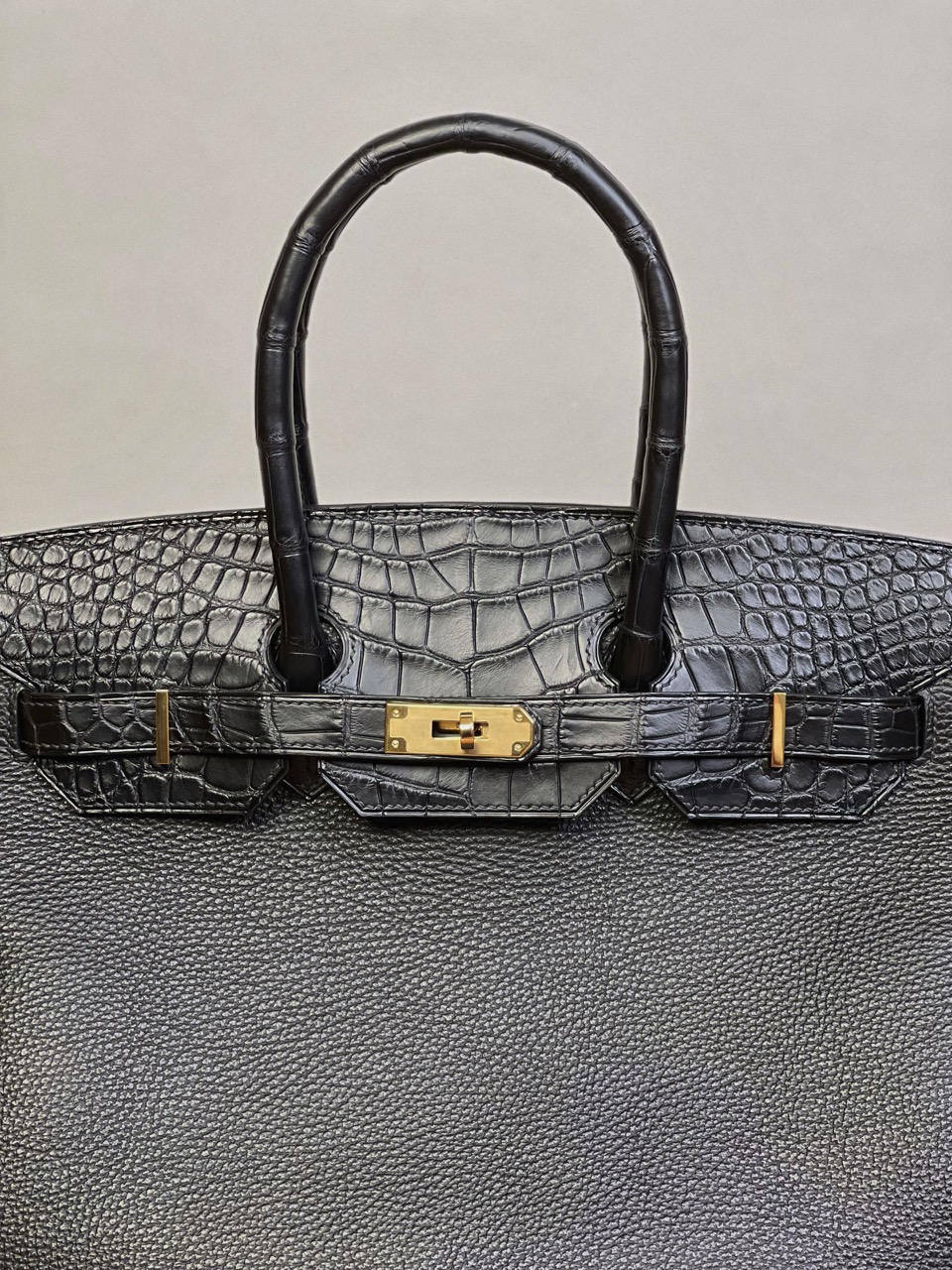 Ексклюзивна сумка Birkin 35 Crocodile, створена вручну за класичною технологією легендарної Birkin 35, з точним дотриманням традицій французької школи марокінерії. В основі - майстерність, відточена знаннями, отриманими від швейцарських ремісників, та ювелірна увага до кожної деталі.